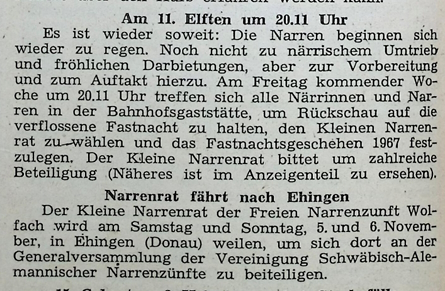Amtliches Nachrichtenblatt 05.11.1966 – Narrenrat fährt noch Ehingen