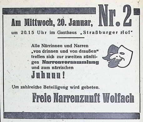 Amtliches Nachrichtenblatt 16.01.1965 – Narrenversammlung im Straßburgerhof