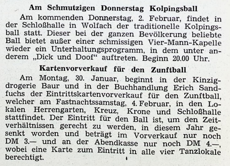 Amtliches Nachrichtenblatt 28.01.1967 – Kartenvorverkauf für den Zunftball
