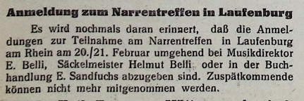 Anmeldung zum Narrentreffen in Laufenburg