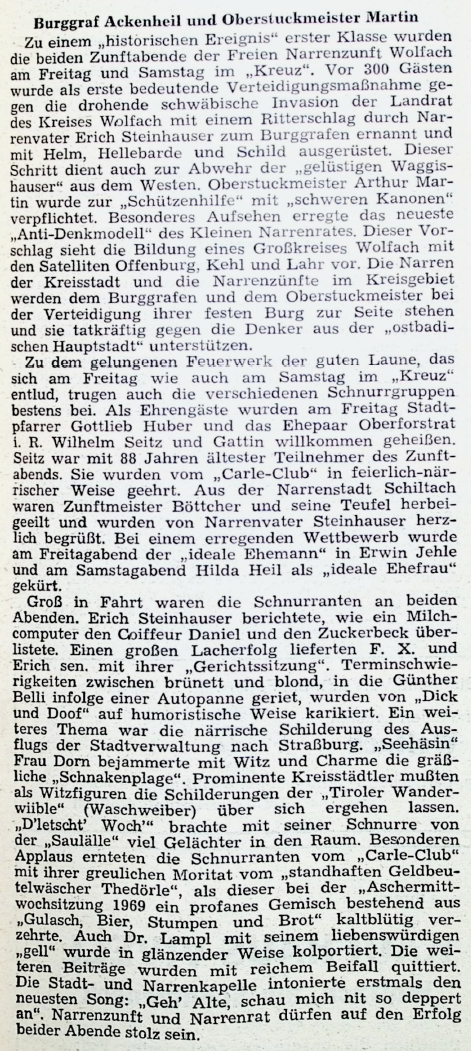 Amtliches Nachrichtenblatt 31.01.1970 – Bericht zu den beiden Zunftabende