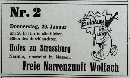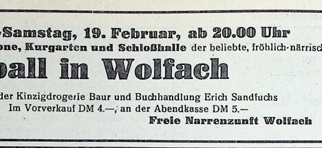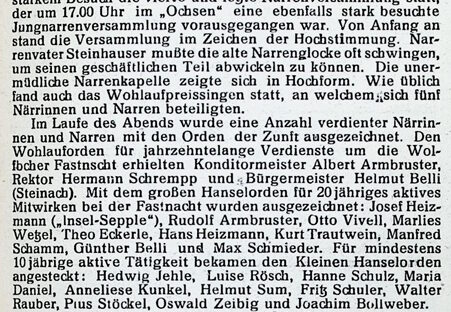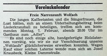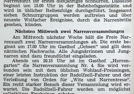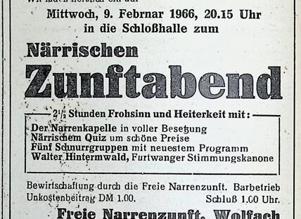Wolfacher Zeitung 11.02.1966 – erster Zunftabend in Wolfach