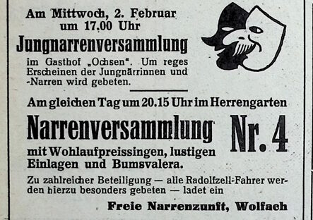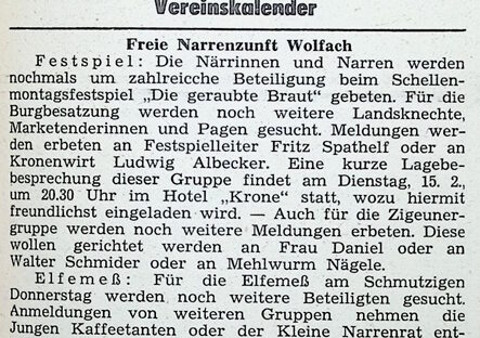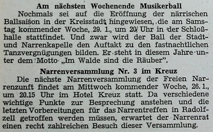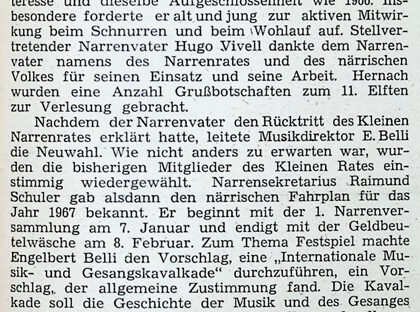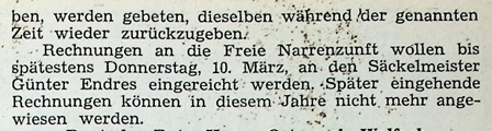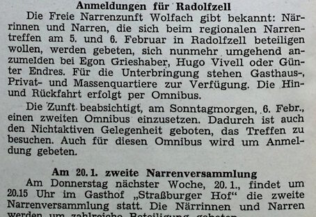 Amtliches Nachrichtenblatt 15.01.1966 – Einladung zur Narrenversammlung