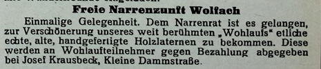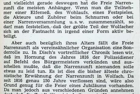 Offenburger Tageblatt 18.02.1966 – Erläuterungen von Josef Krausbeck zur Freien Narrenzunft Wolfach