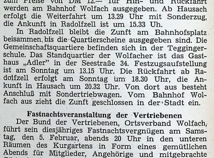 Amtliches Nachrichtenblatt 05.02.1966 – Fastnachtsveranstaltung der Vertriebenen