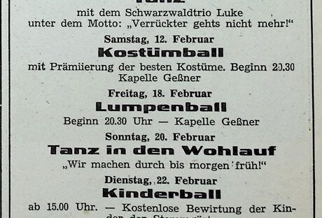 Amtliches Nachrichtenblatt 12.02.1966 – Kartenvorverkauf für den Zunftball