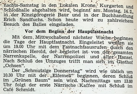 Amtliches Nachrichtenblatt 19.02.1966 – Narrenkammer ist geöffnet