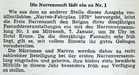 Die Narrenzunft lädt ein zu Nr. 1