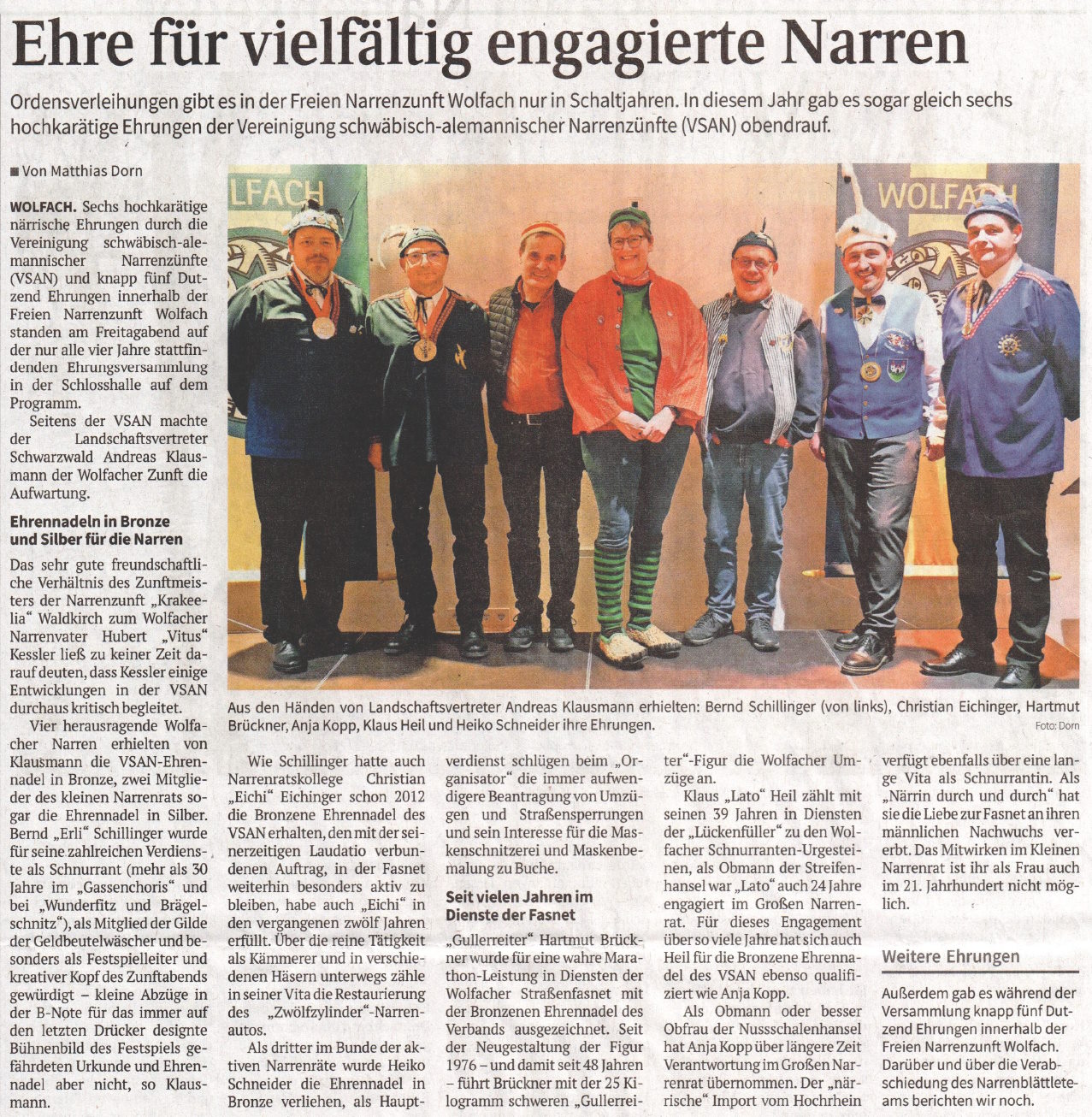 Schwarzwälder Bote 23.01.2024 – Verleihung von VSAN-Ehrennadeln
