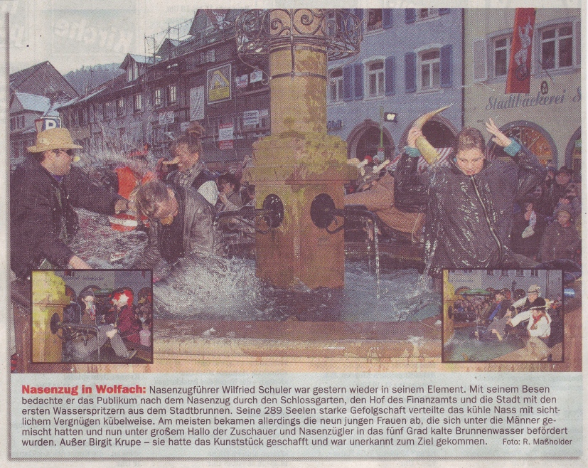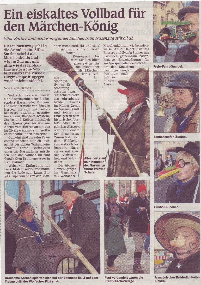 Offenburger Tageblatt 17.02.2010 – Silke Sattler und acht Kolleginen tauchen beim Nasenzug stilvoll ab