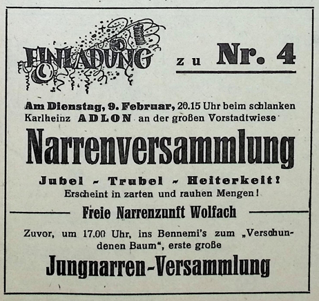 Amtliches Nachrichtenblatt 06.02.1965 – Narrenversammlung Nr. 4
