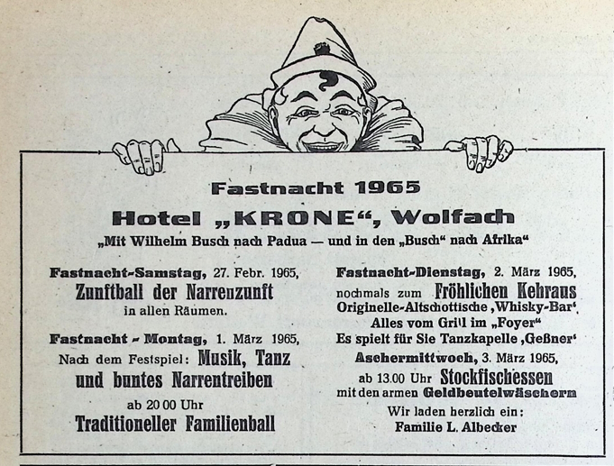 Fastnacht 1965 Hotel „Krone“ Wolfach