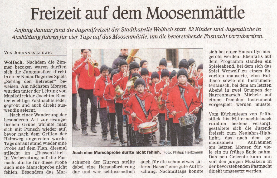 Offenburger Tageblatt 25.01.2024 – Jugendfreizeit der Stadtkapelle als Vorbereitung für die Fasnet
