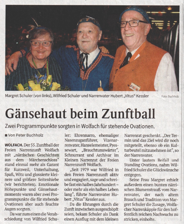 Schwarzwälder Bote 08.02.2024 – Verabschiedung von Narrenrat Wilfried Schuler