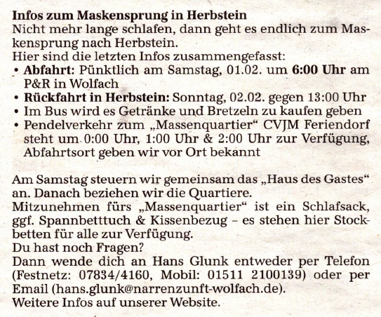 Infos zum Maskensprung in Herbstein