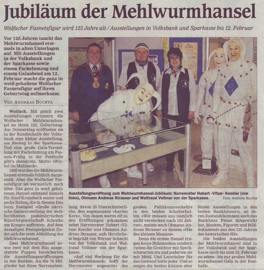 Offenburger Tageblatt 11.01.2010 – Wolfacher Fasnetsfigur wird 125 Jahre alt
