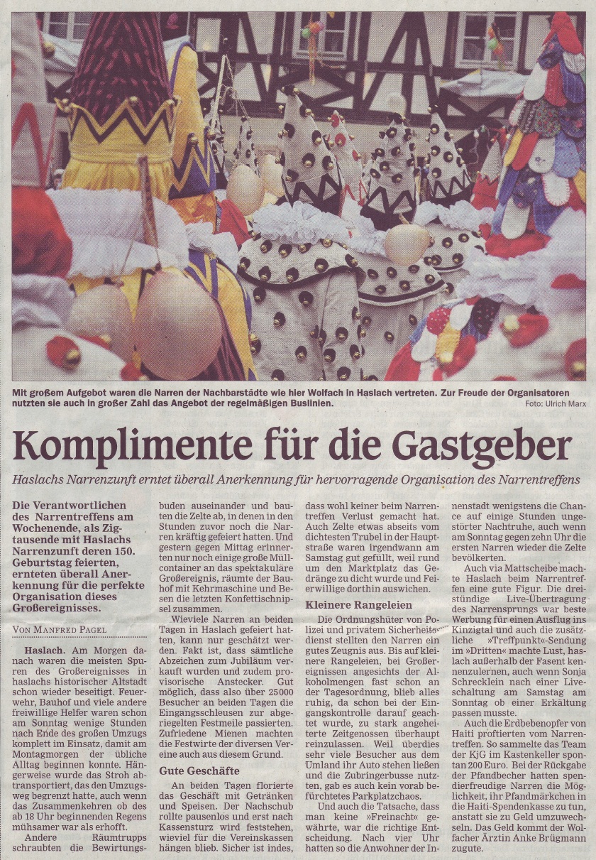Offenburger Tageblatt 26.01.2010 – Narrentreffen in Haslach