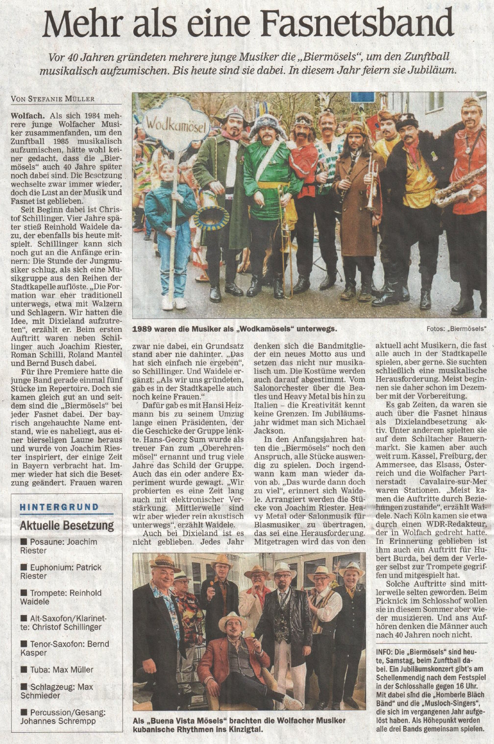 Offenburger Tageblatt 10.02.2024 – 40-jähriges Jubiläum der „Biermösels“