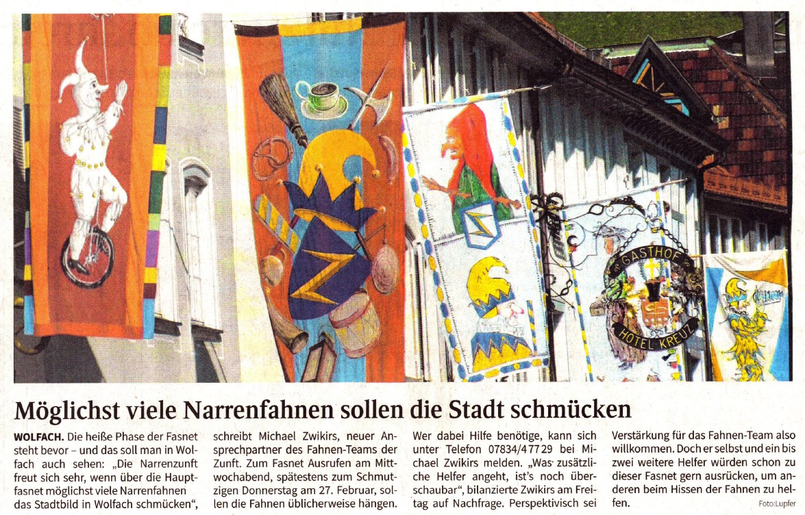 Möglichst viele Narrenfahnen sollen die Stadt schmücken