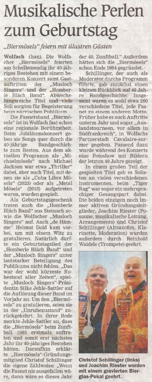 Offenburger Tageblatt 14.02.2024 – „Biermösels“ feiern mit illustren Gästen