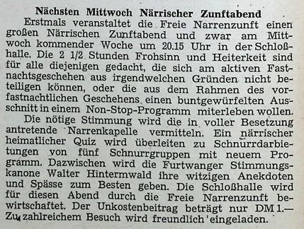 Nächsten Mittwoch Närrischer Zunftabend