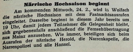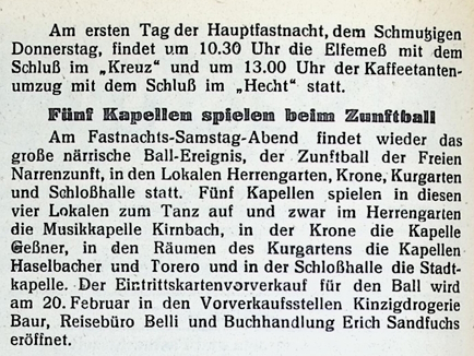 Amtliches Nachrichtenblatt 20.02.1965 – Fünf Kapellen spielen beim Zunftball