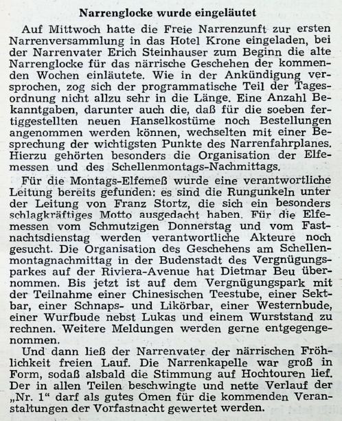 Amtliches Nachrichtenblatt 10.01.1970 – Bericht von der ersten Narrenversammlung