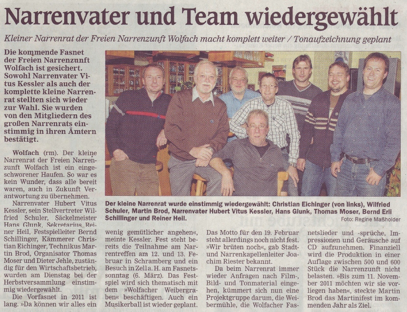 Offenburger Tageblatt 30.10.2010 – Sitzung des Großen Narrenrats