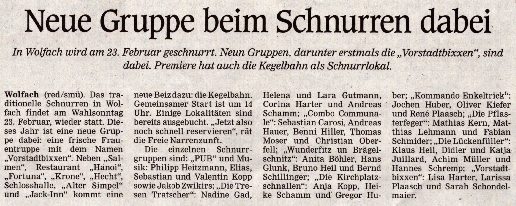 Offenburger Tageblatt 25.01.2025 – In Wolfach wird am 23. Februar geschnurrt