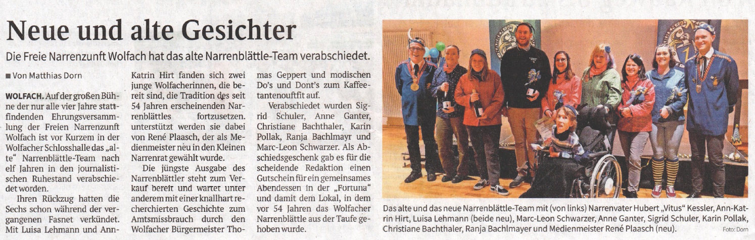 Schwarzwälder Bote 26.01.2024 – Verabschiedung beim Narrenblättle-Team