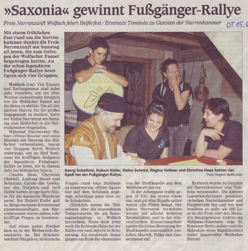 Offenburger Tageblatt 15.06.2010 – Freie Narrenzunft Wolfach feiert Helferfest