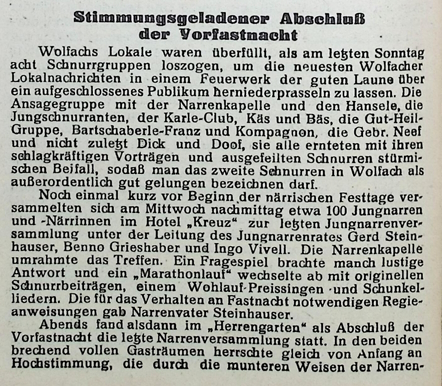 Amtliches Nachrichtenblatt 20.02.1965 – Schnurren und letzte Narrenversammlung