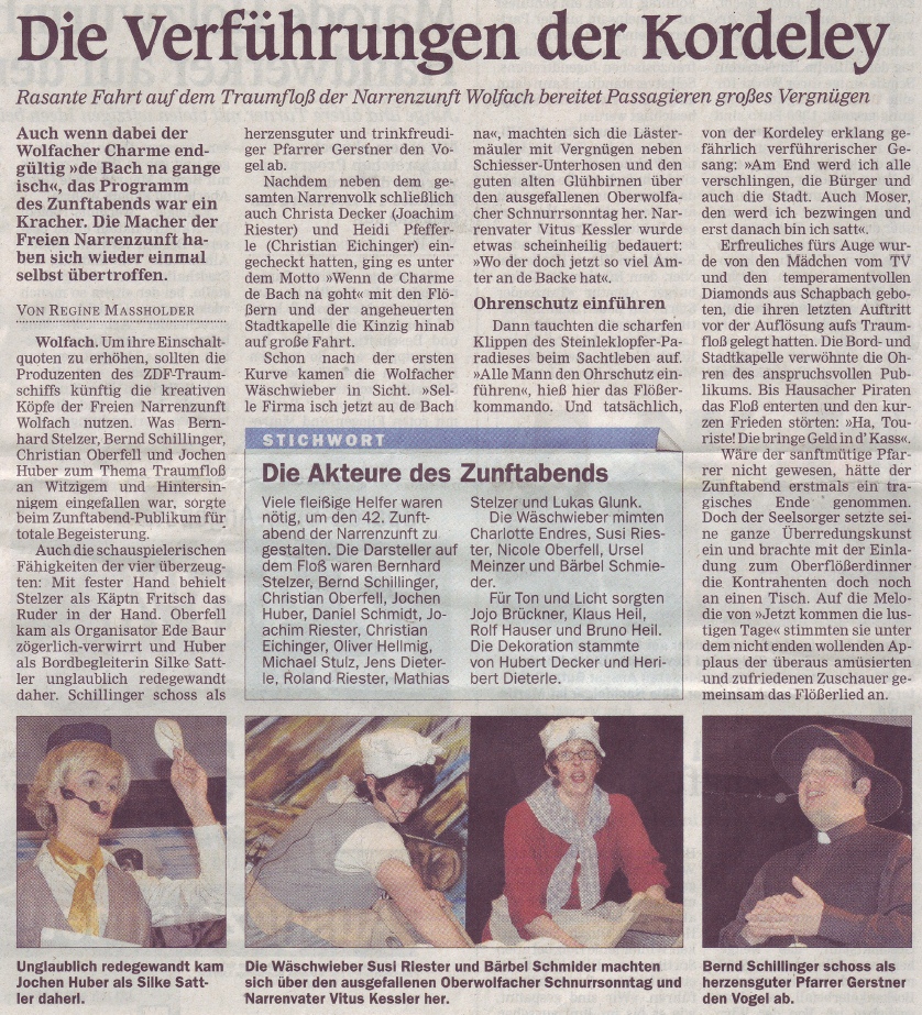 Offenburger Tageblatt 08.02.2010 – Rasante Fahrt auf dem Traumfloß der Narrenzunft Wolfach