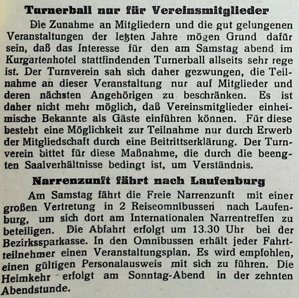 Amtliches Nachrichtenblatt 20.02.1965 – Narrenzunft fährt nach Laufenburg