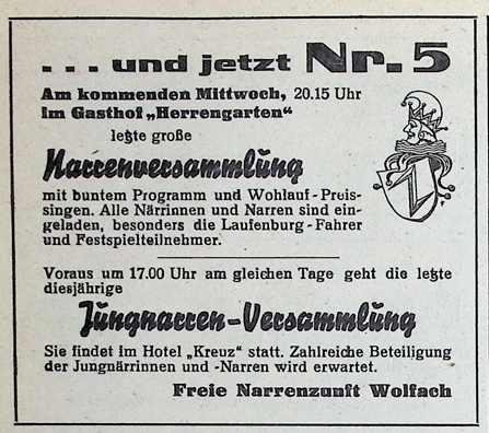 Amtliches Nachrichtenblatt 13.02.1965 – Narrenversammlung & Jungnarrenversammlung