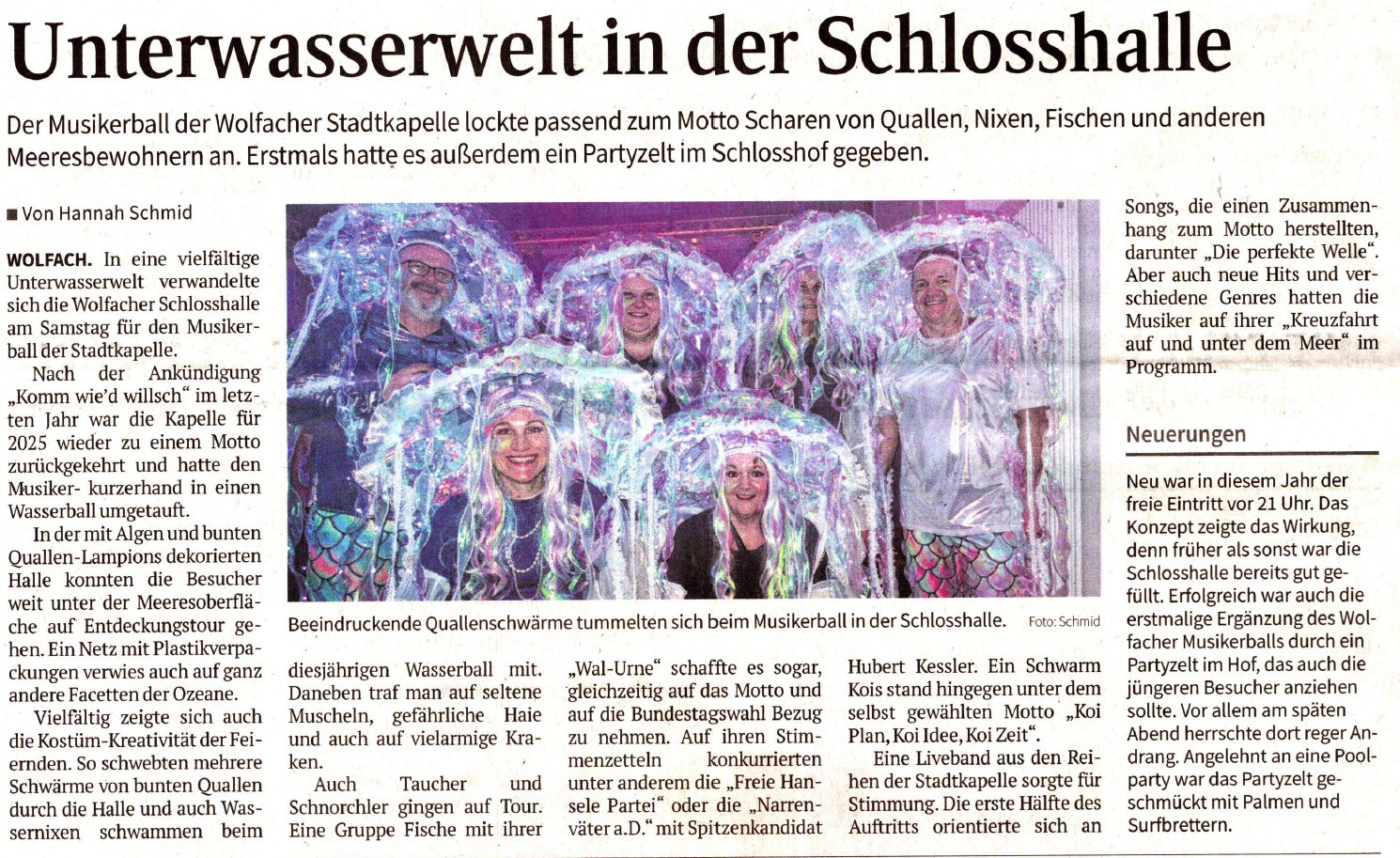 Schwarzwälder Bote 19.02.2025 – Musikerball mit dem Motto „Wasserball“
