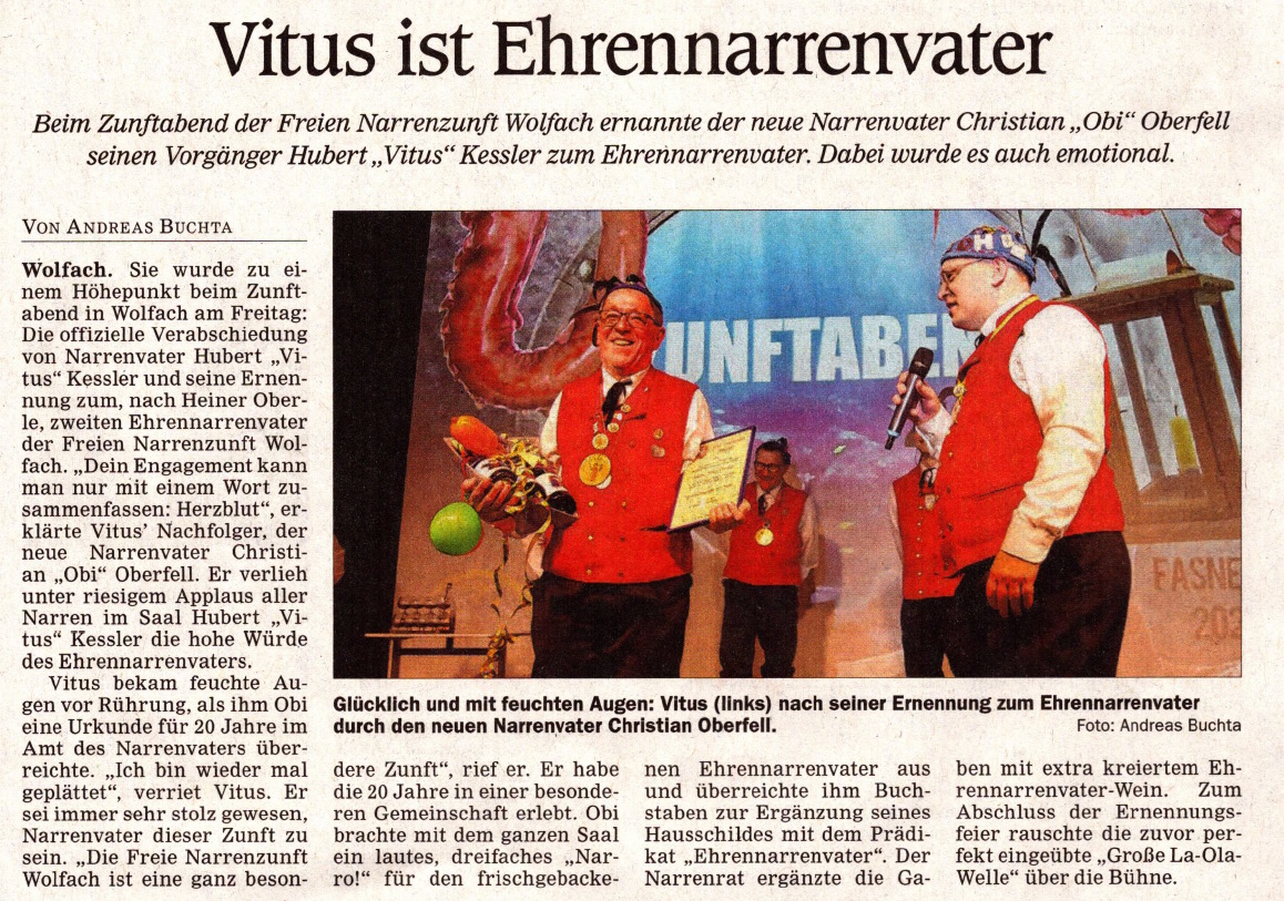 Offenburger Tageblatt 25.02.2025 – Ernennung beim Zunftabend 2025