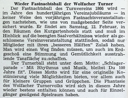 Wieder Fastnachtsball der Wolfacher Turner