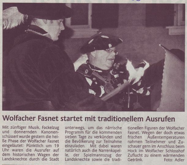 Wolfacher Fasnet startet mit traditionellem Ausrufen