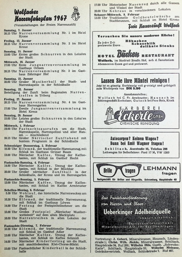Wolfacher Narrenfahrplan 1967