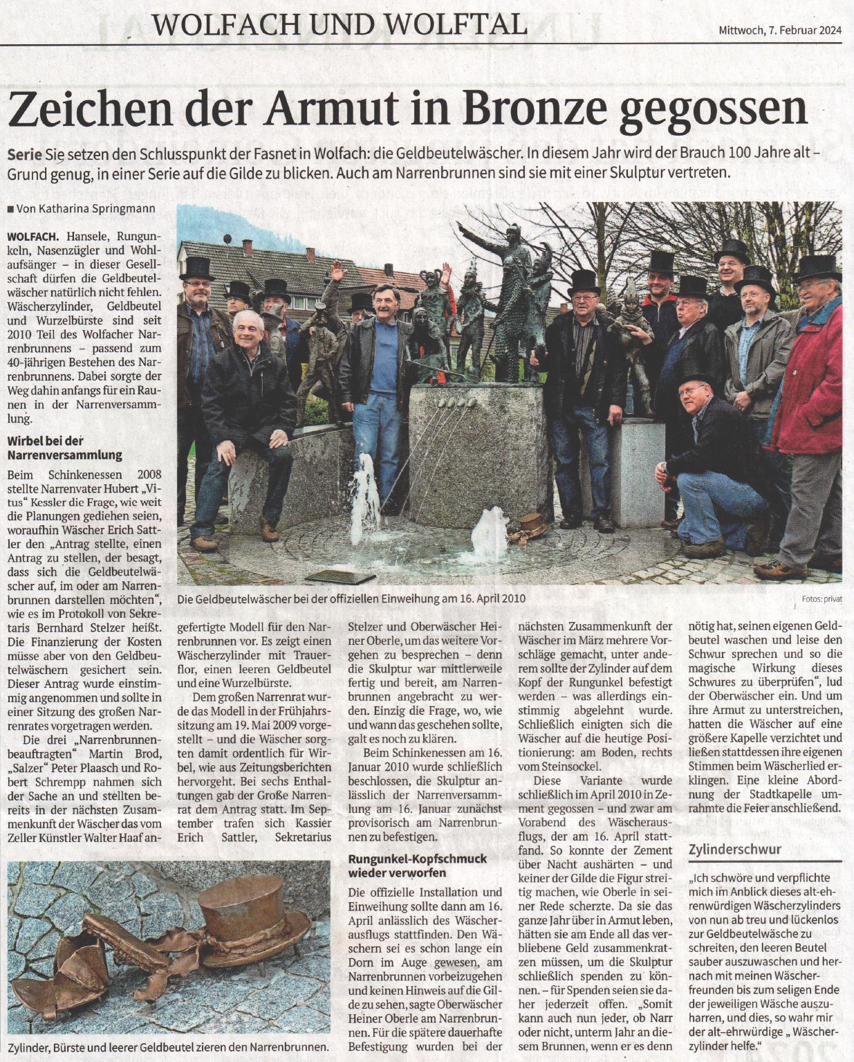 Schwarzwälder Bote 07.02.2024 – Zylinder, Bürste und leerer Geldbeutel am Narrenbrunnen