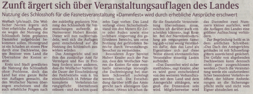 Schwarzwälder Bote 19.01.2010 – Nutzung des Schlosshofs wird durch erhebliche Ansprüche erschwert